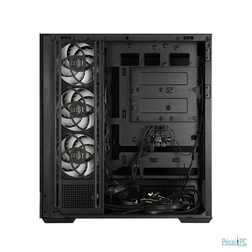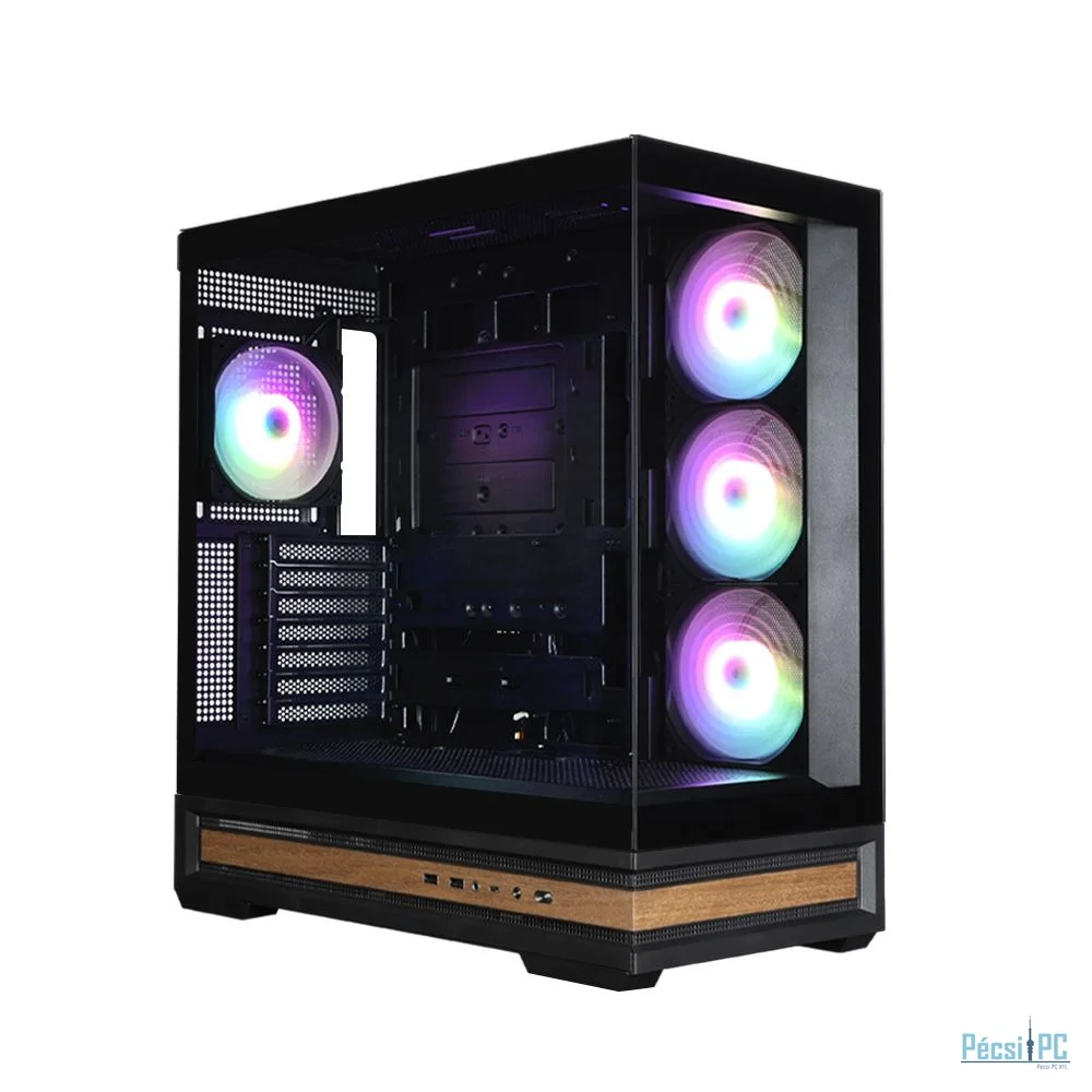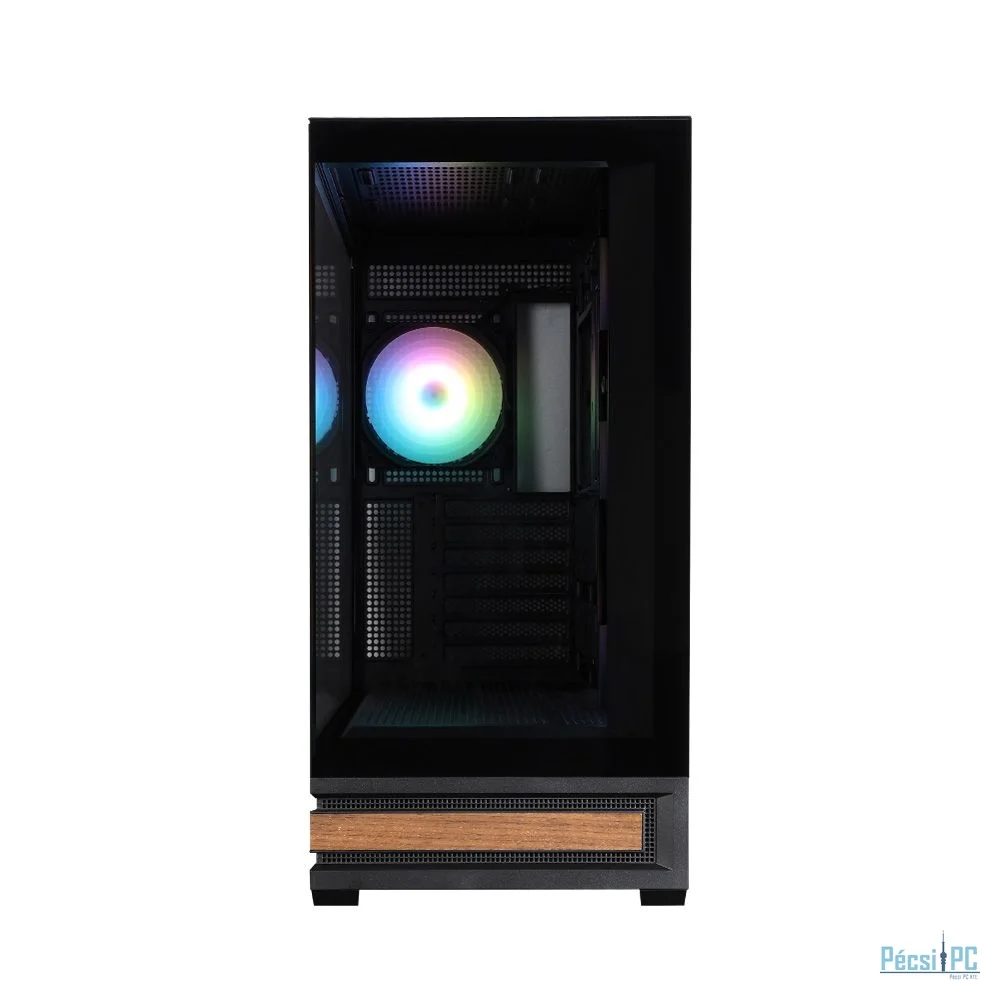 microATX, Black, 2x3,5", 2xUSB3.0, 1xUSB Type-C, Audio, Táp nélkül, 492x452x235mm, Ventilátor:4x12cm, Tempered glass window, RGB, Gamer