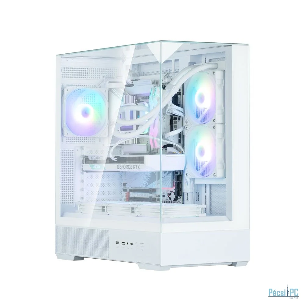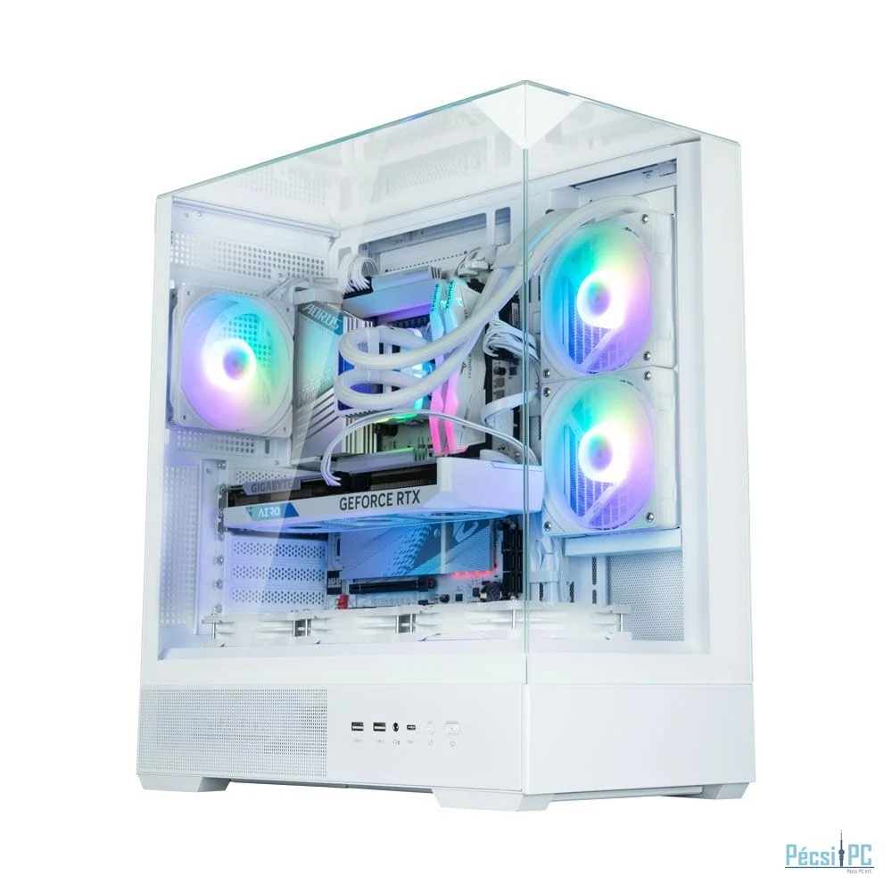ATX, White, 3x3,5", 3x2,5", 2xUSB3.0, 1xUSB Type-C, Audio, Táp nélkül, 495x452x235mm, Ventilátor:12cm, Tempered glass window, RGB, Gamer