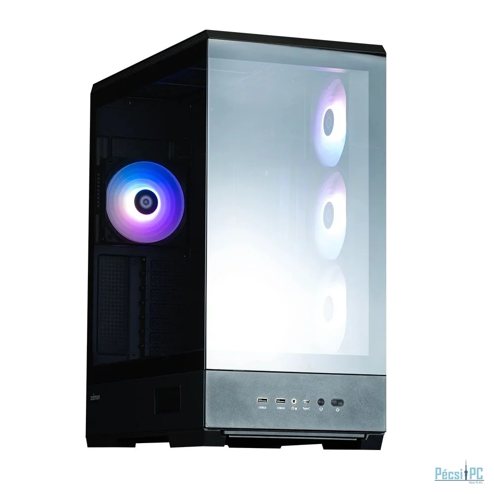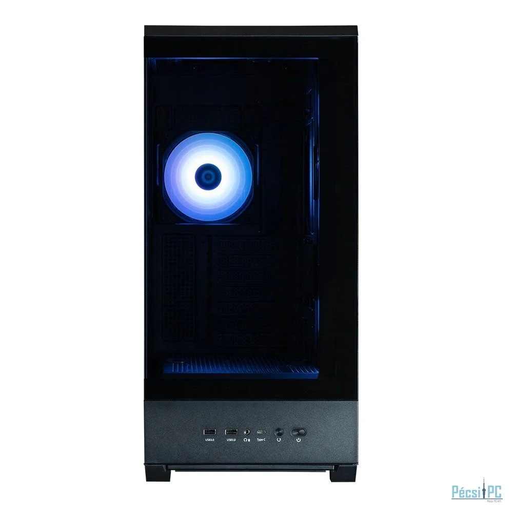 ATX, Black, 2x3,5", 2x2,5", 2xUSB3.0, 1xUSB Type-C, Audio, Táp nélkül, 480X240x512mm, Ventilátor:4x12cm, Tempered glass window