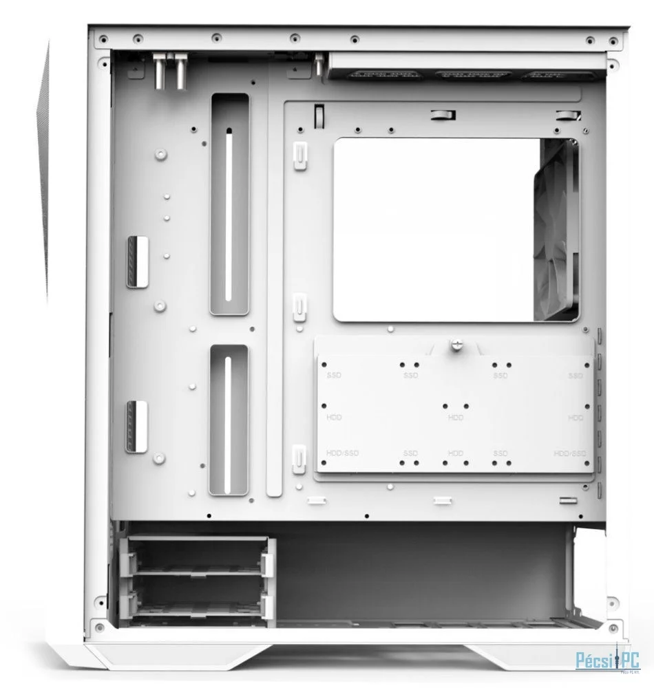 ATX, White, 2x3,5", 3x2,5", 2xUSB2.0, 2xUSB3.0, 1xUSB Type-C, Audio, Táp nélkül, 473x245x496mm, Ventilátor:4x14cm, Tempered glass window, RGB, Gamer